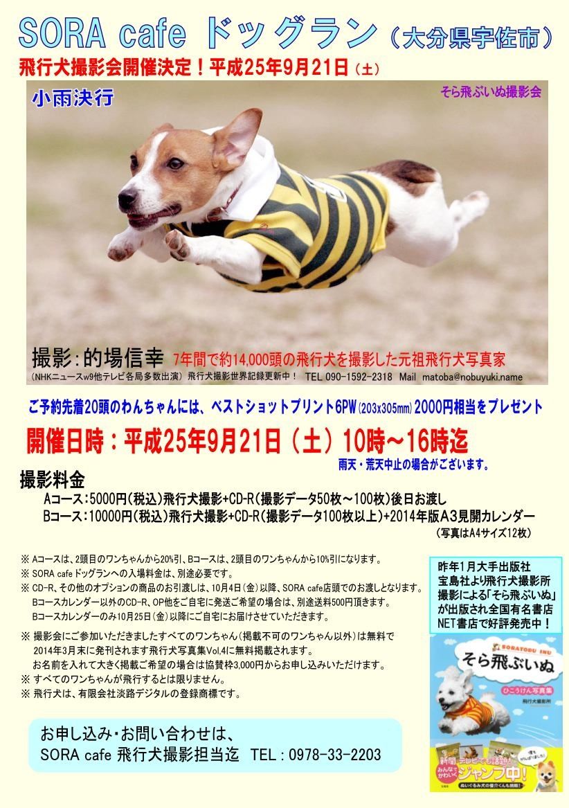この3連休の初日の9/21(土)は、SORAcafeさんで飛行犬撮影会でした。